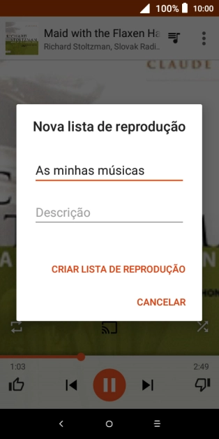 Introduza o nome pretendido para a lista de reprodução e prima CRIAR LISTA DE REPRODUÇÃO.