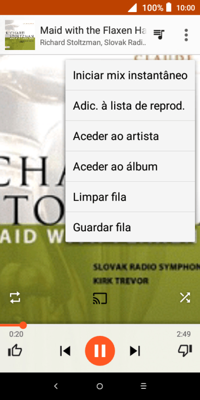 É possível escolher a reprodução contínua de um ou vários ficheiros de música.