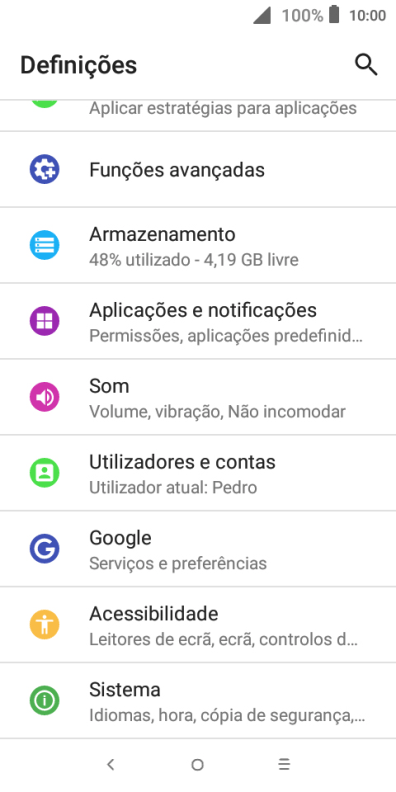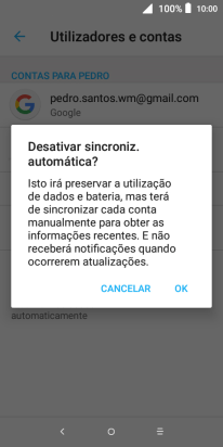 Prima o indicador junto a "Sincronização automática de dados" para ativar ou desativar a função.