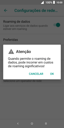 Prima o indicador junto a "Roaming de dados" para ativar ou desativar a função.