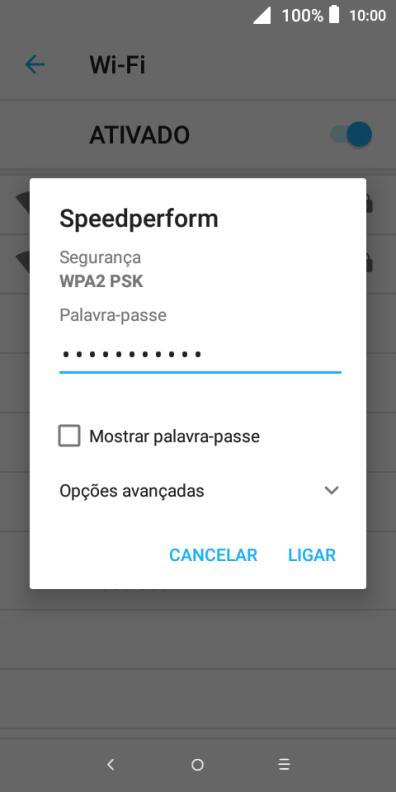 Introduza a password da rede Wi-Fi e prima LIGAR.