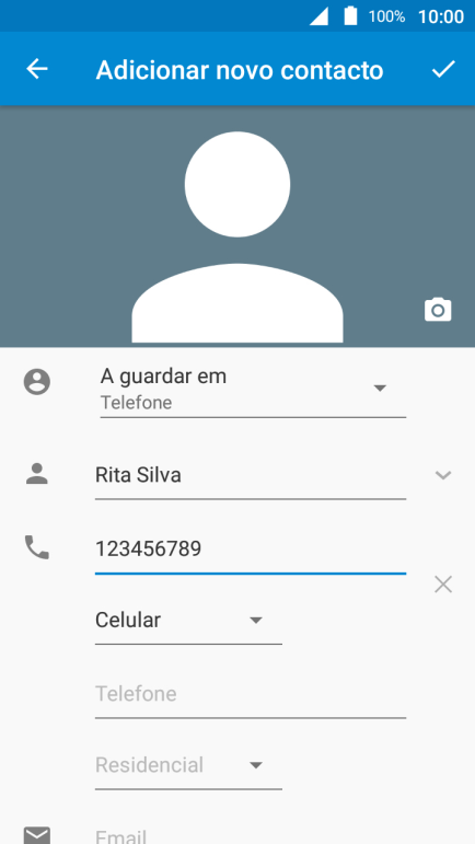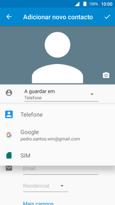 Siga as indicações no ecrã para adicionar outras informações, como por ex., o endereço de e-mail ou um toque personalizado.