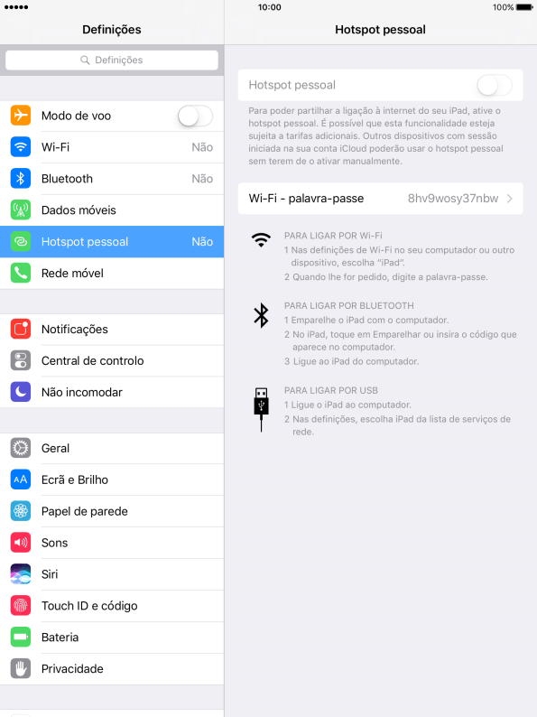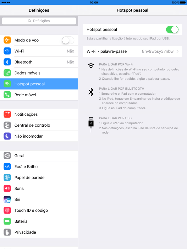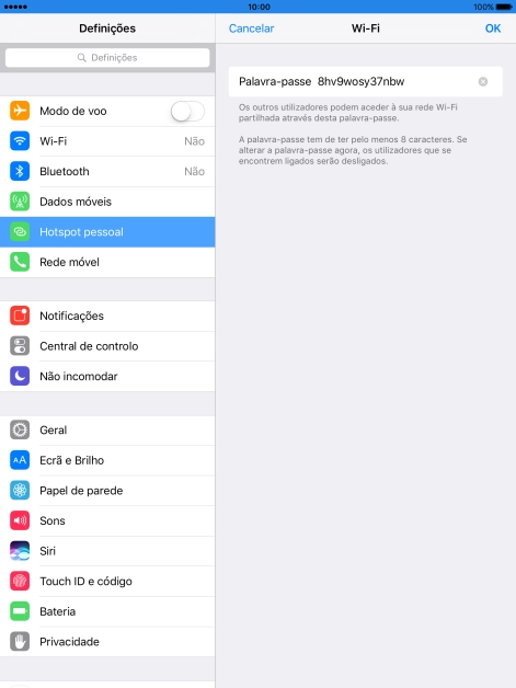 Introduza a password do seu hotspot Wi-Fi e estabeleça a ligação.