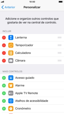 Prima o ícone para adicionar junto da função pretendida para a adicionar à Central de controlo.