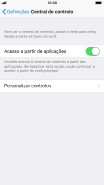 Se ativar a função, a Central de controlo pode ser utilizada no ecrã inicial e enquanto utiliza outras aplicações.