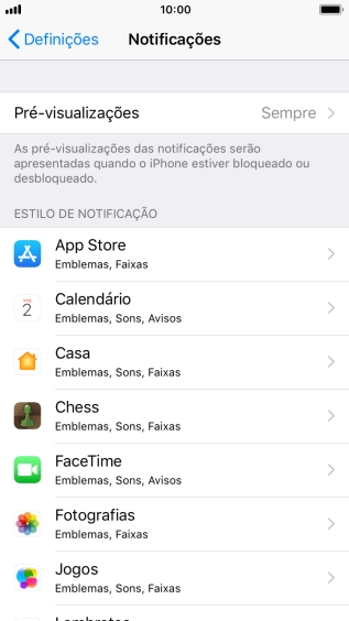Para desativar a pré-visualização de notificações, prima Nunca.