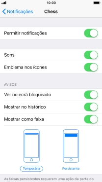 Prima o indicador junto a "Permitir notificações" para ativar ou desativar as notificações da aplicação pretendida.