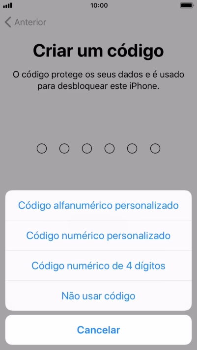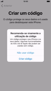 Siga as indicações no ecrã para ativar a utilização do código de bloqueio do telefone ou prima Não usar código.