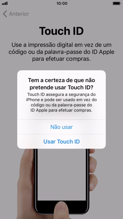 Siga as indicações no ecrã para ativar a utilização do Touch ID ou prima Configurar Touch ID depois.