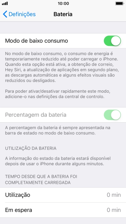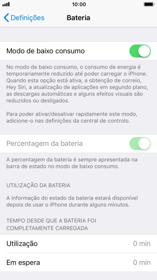 Prima o indicador junto a "Modo de baixo consumo" para ativar a função.