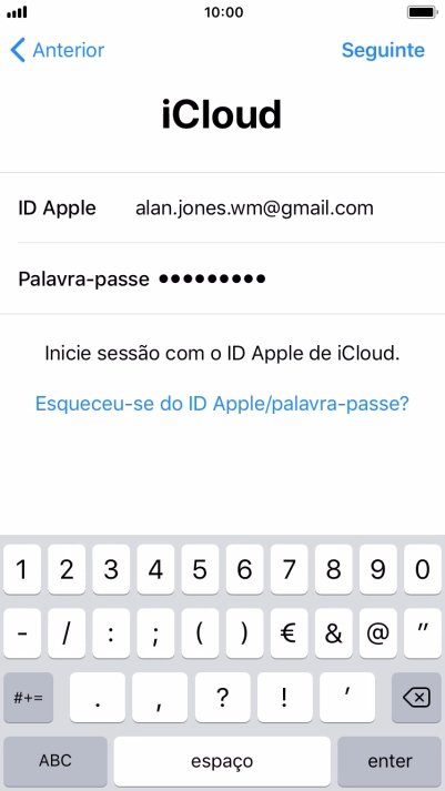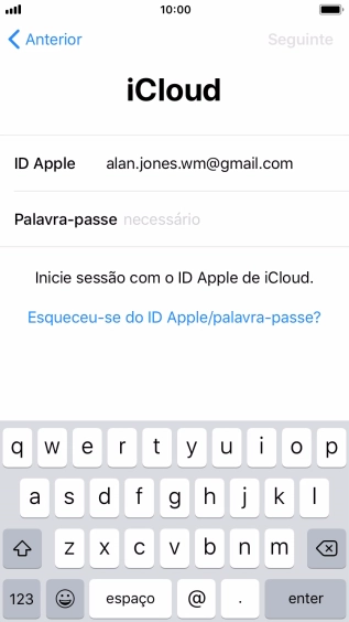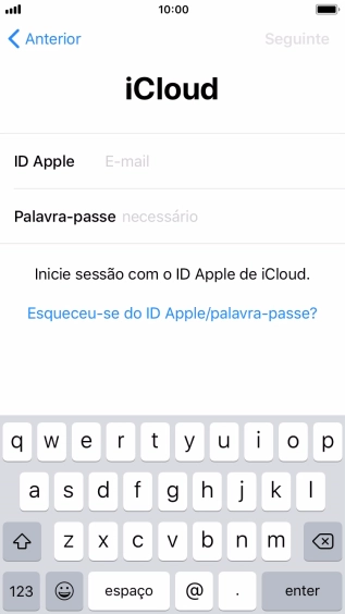 Prima o campo junto a "ID Apple" e introduza o nome de utilizador do seu ID Apple.