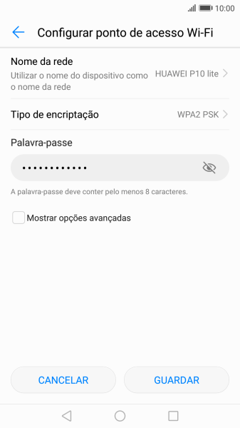 Introduza o nome pretendido do hotspot Wi-Fi e prima GUARDAR.