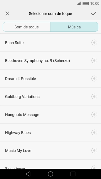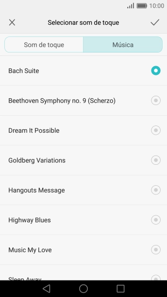 Quando tiver encontrado o tom de toque que pretende, prima o ícone para aceitar.
