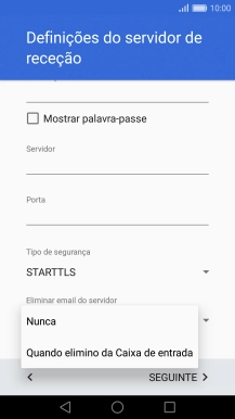 Prima a lista suspensa sob "Eliminar e-mail do servidor".