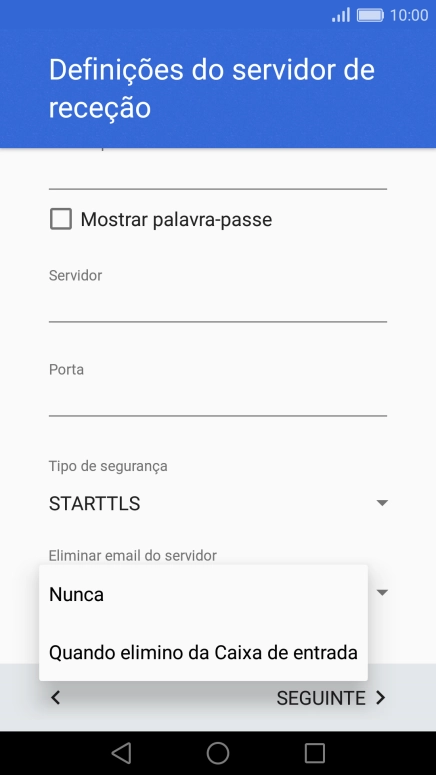 Prima Nunca para manter os e-mails no servidor quando estes são apagados no telefone.