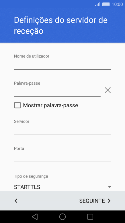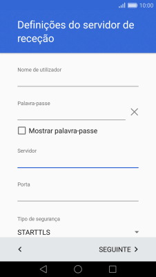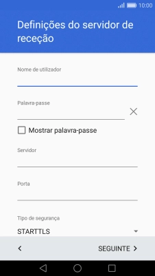 6. Introduza o servidor de receção