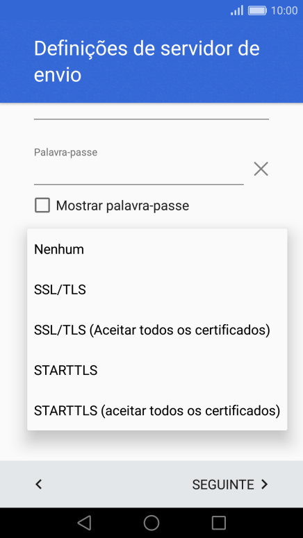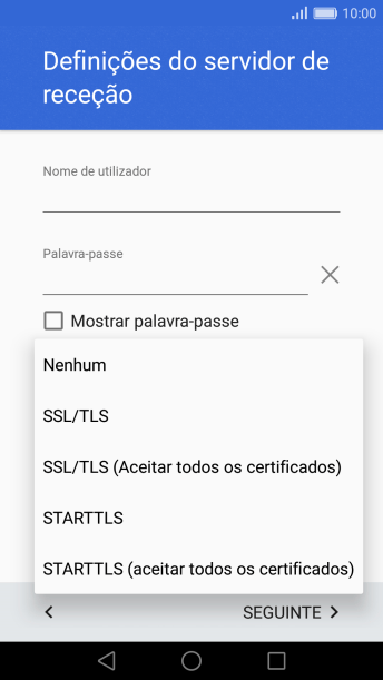 Prima a lista suspensa sob "Tipo de segurança".