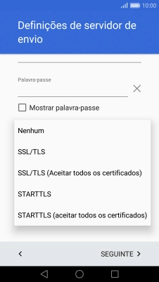 Prima SSL/TLS para ativar a função.
