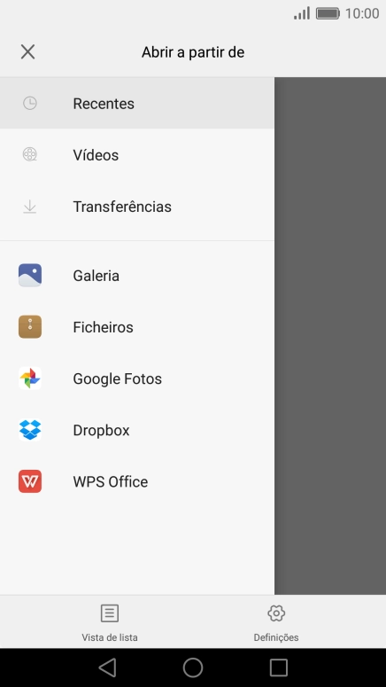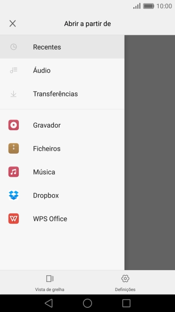 Deslize o dedo sobre o ecrã da esquerda para a direita.