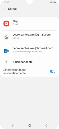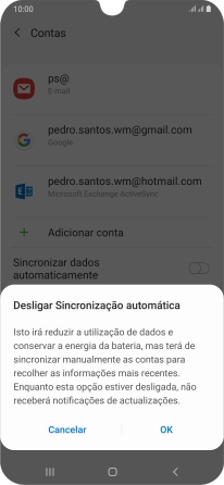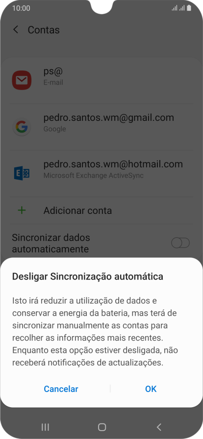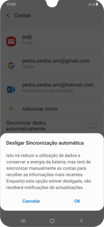 Prima o indicador junto a "Sincronizar dados automaticamente" para ativar ou desativar a função.