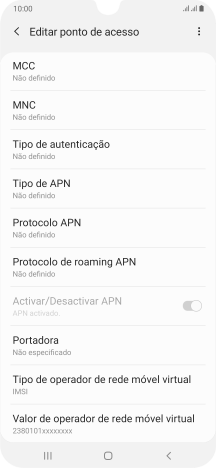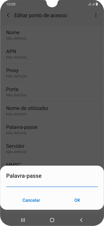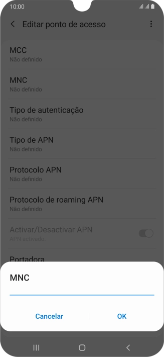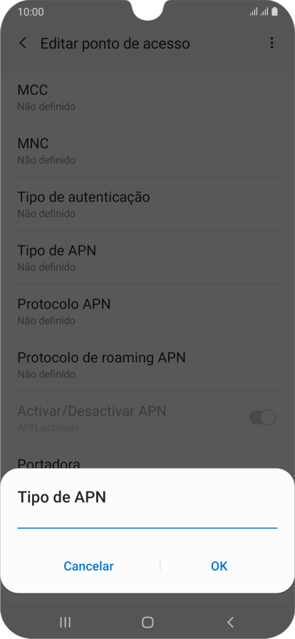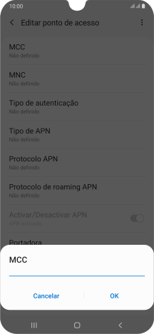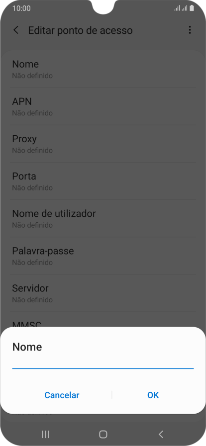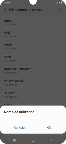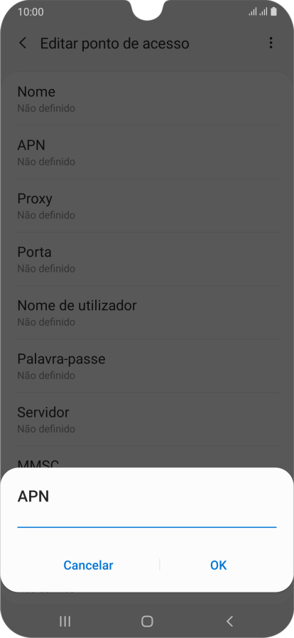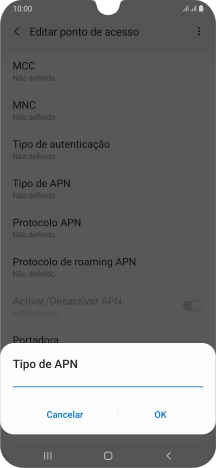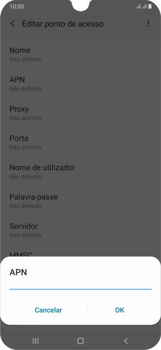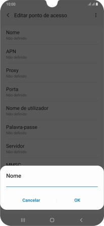 3. Introduza o nome do ponto de acesso (APN)
