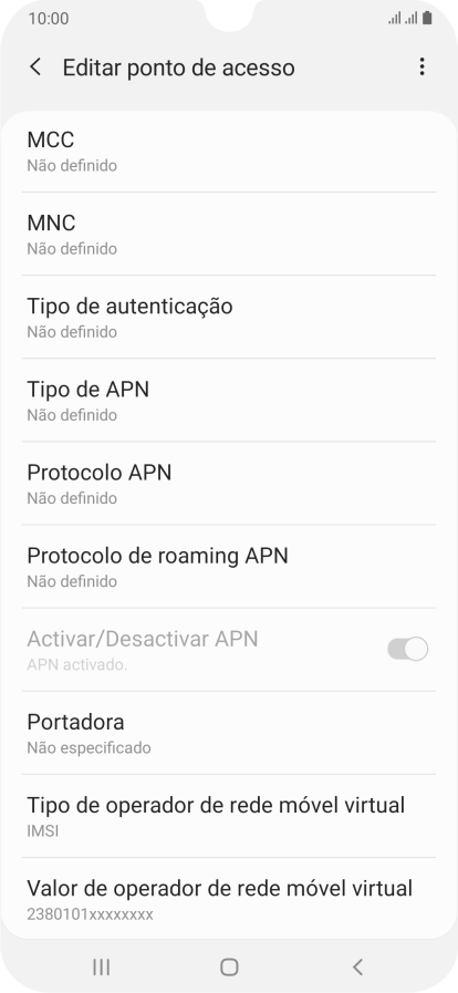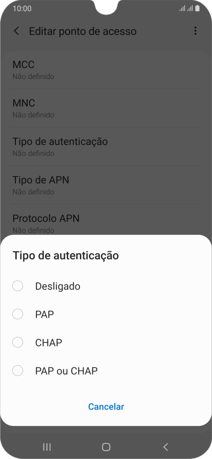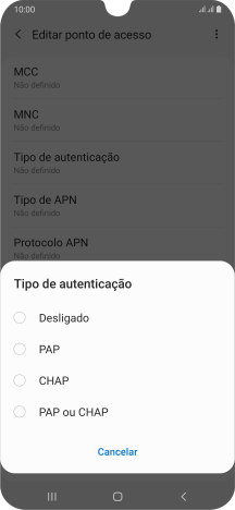 9. Introduza o tipo de APN