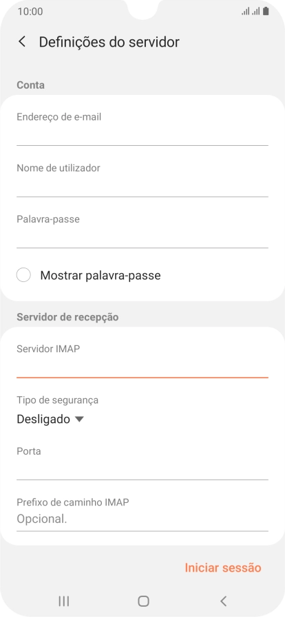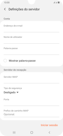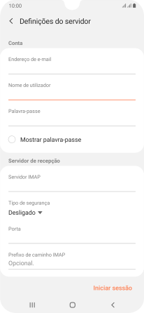 Prima o campo sob "Servidor IMAP" e introduza o nome do servidor de receção do fornecedor de e-mail.