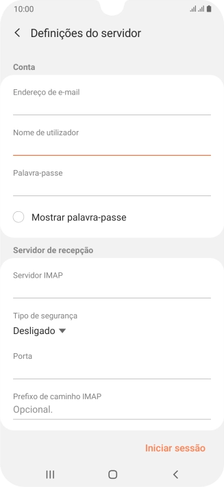 Prima o campo sob "Nome de utilizador" e introduza o nome de utilizador da sua conta de e-mail.