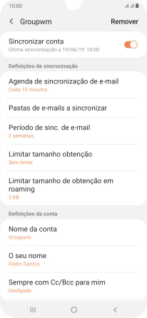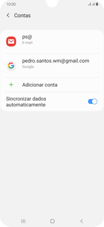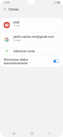 Prima o indicador junto a "Sincronizar conta" para ativar a função.