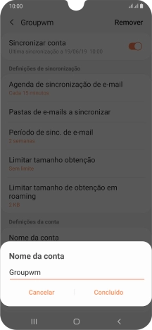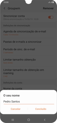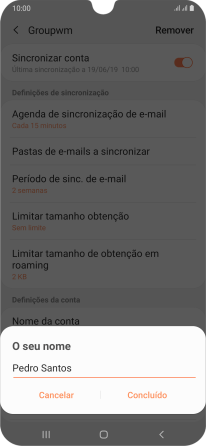 Introduza o nome de remetente e prima Concluído.