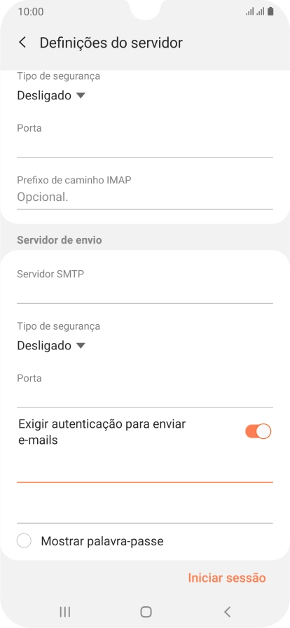 Prima o campo da password e introduza a password do servidor de envio do seu fornecedor de e-mail.