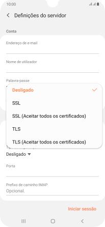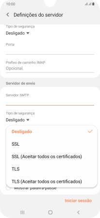 Prima a lista suspensa sob "Tipo de segurança".