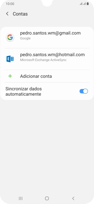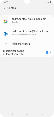 Prima o indicador junto a "Sincronizar conta" para ativar a função.