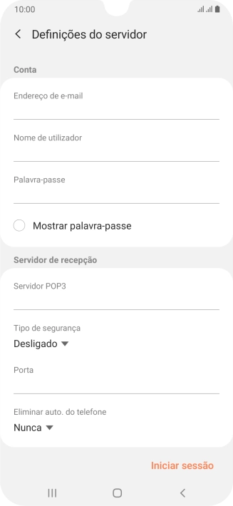Prima o campo da password e introduza a password da sua conta de e-mail Vodafone.