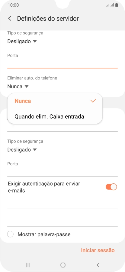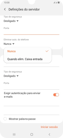 Prima Quando elim. Caixa entrada para apagar os e-mails no servidor quando estes são apagados no telefone.