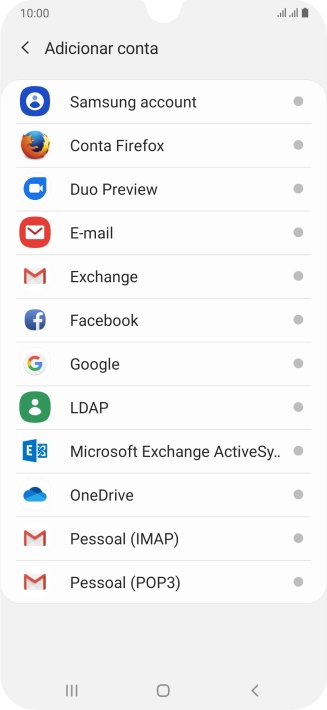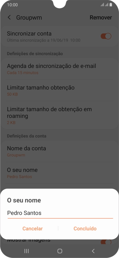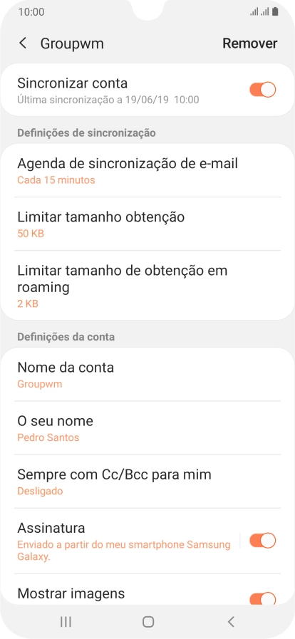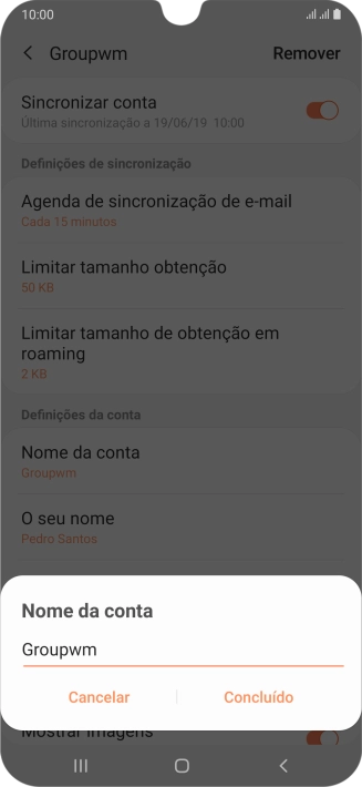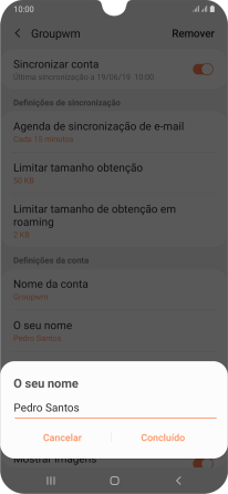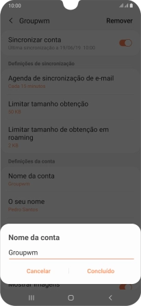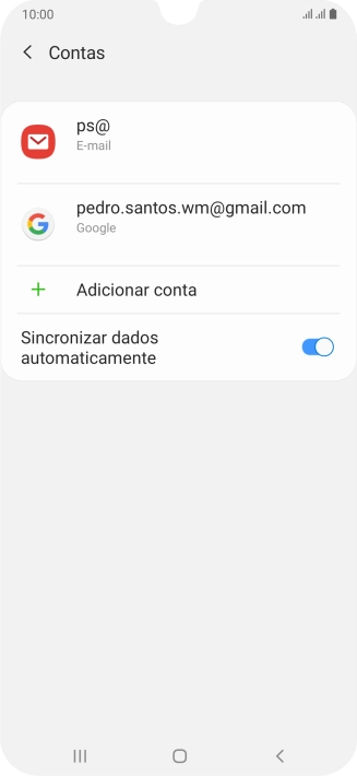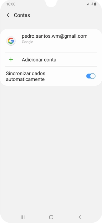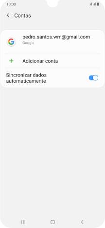 Prima o indicador junto a "Sincronizar conta" para ativar a função.