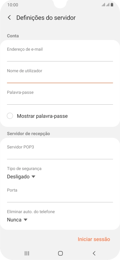Prima o campo do nome de utilizador e introduza o nome de utilizador da sua conta de e-mail Vodafone.