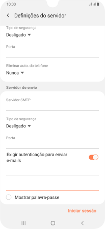 Prima o indicador junto a "Exigir autenticação para enviar e-mails" para ativar a função.