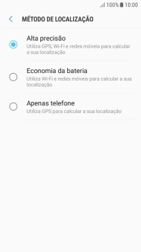 Se escolher Economia da bateria, o telefone irá encontrar a sua localização aproximada utilizando a rede móvel e as redes Wi-Fi nas proximidades.