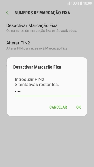 Introduza o código PIN2 e prima OK.