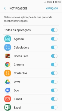 Prima o indicador junto à app pretendida para ativar ou desativar a função.