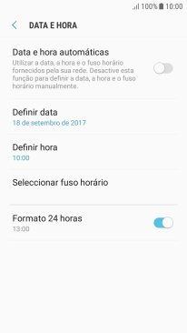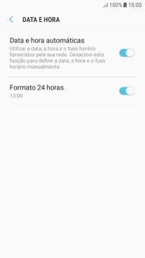 Prima o indicador junto a "Data e hora automáticas" para ativar a função.