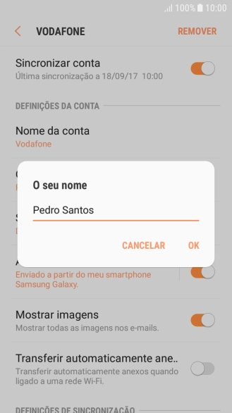 Introduza o nome de remetente e prima OK.