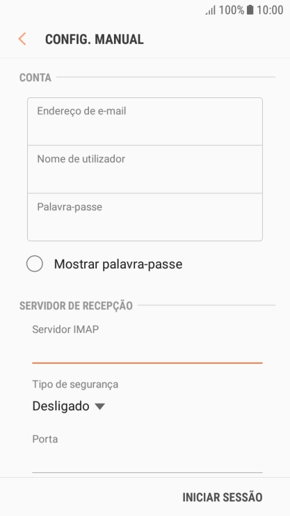 Prima o campo sob "Palavra-passe" e introduza a password da sua conta de e-mail Vodafone.