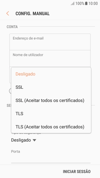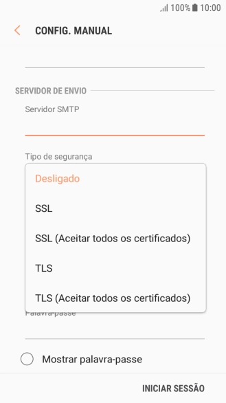 Prima a lista suspensa sob "Tipo de segurança".