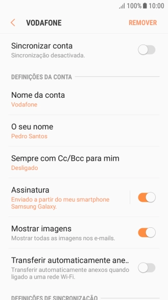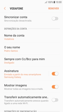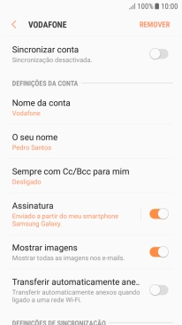 Prima o indicador junto a "Sincronizar conta" para ativar a função.