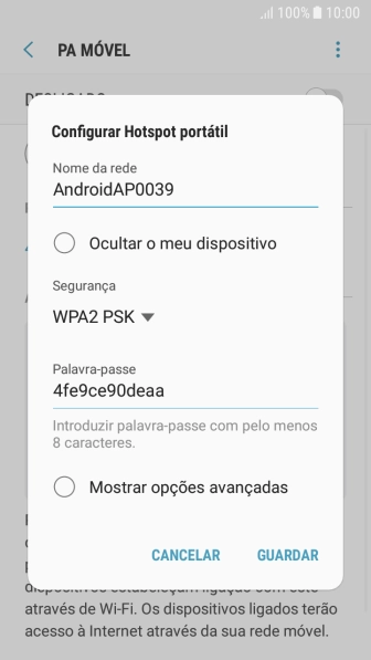 2. Escolha as definições para o hotspot Wi-Fi