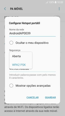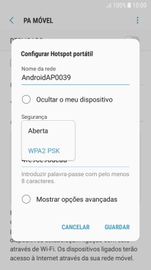 Prima WPA2 PSK para proteger o hotspot Wi-Fi com uma password.