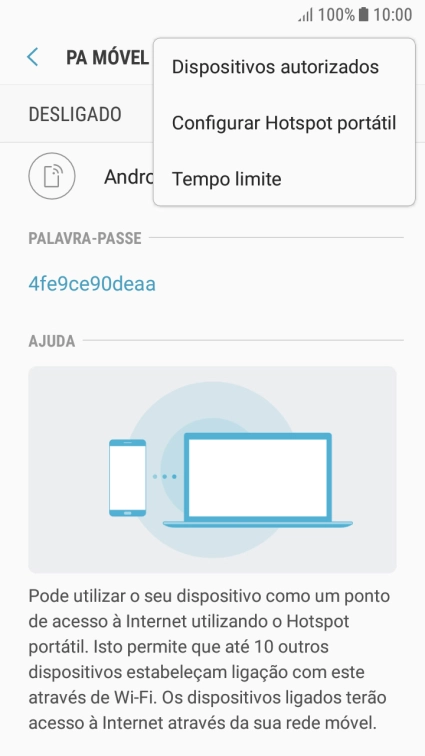 Introduza a password do seu hotspot Wi-Fi e estabeleça a ligação.