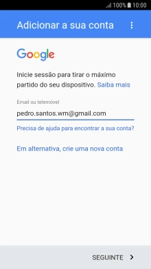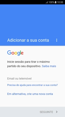 Se não tiver uma conta Google, prima Em alternativa, crie uma nova conta e siga as indicações no ecrã para criar uma conta.